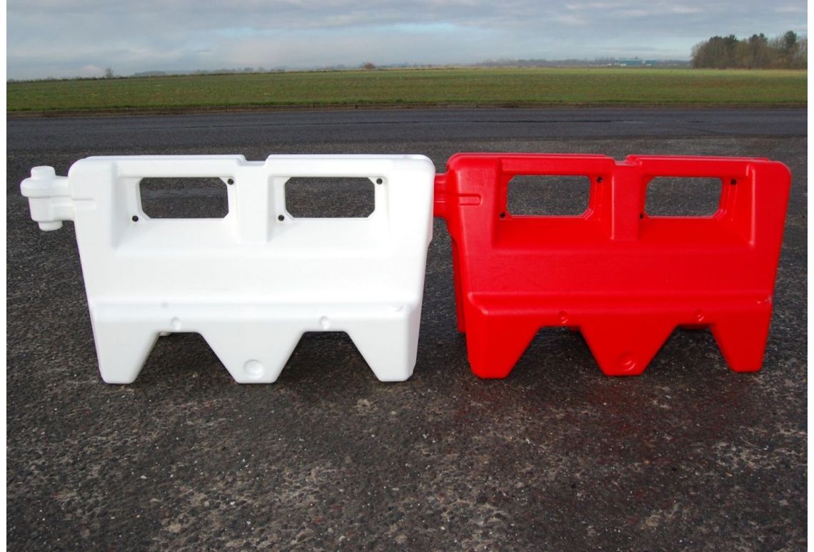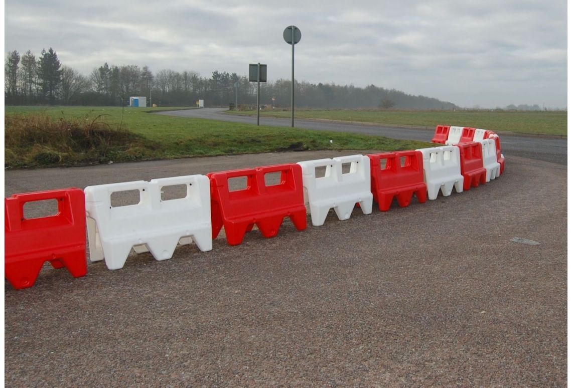 Als de barriers op de juiste plek staan, kunnen ze worden gevuld met water of zand voor stevigheid.