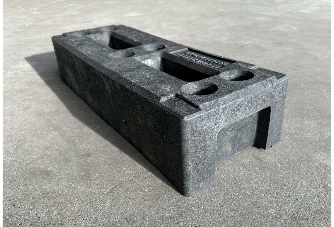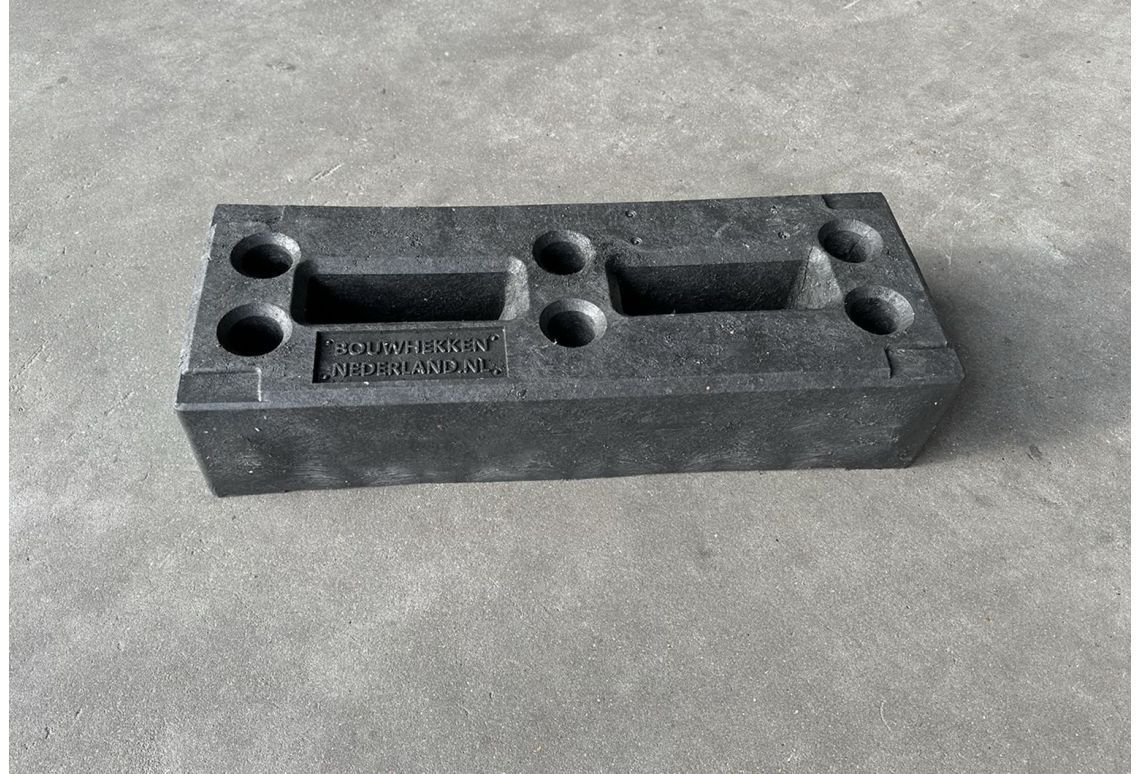 Deze nieuwe duurzame kunststof voet van 19 kg is gemaakt van gerecycled kunststof en bevat naast uitsparingen voor heftrucklepels 4 hoekprofielen voor het stapelen van de blokken. De uitsparingen kunnen ook gebruikt worden voor het plaatsen van extra bouwhekken in een haakse hoek. Met zijn 19 kg is dit een uitstekende fundering voor je hekwerk en zeer geschikt voor intensief gebruik.