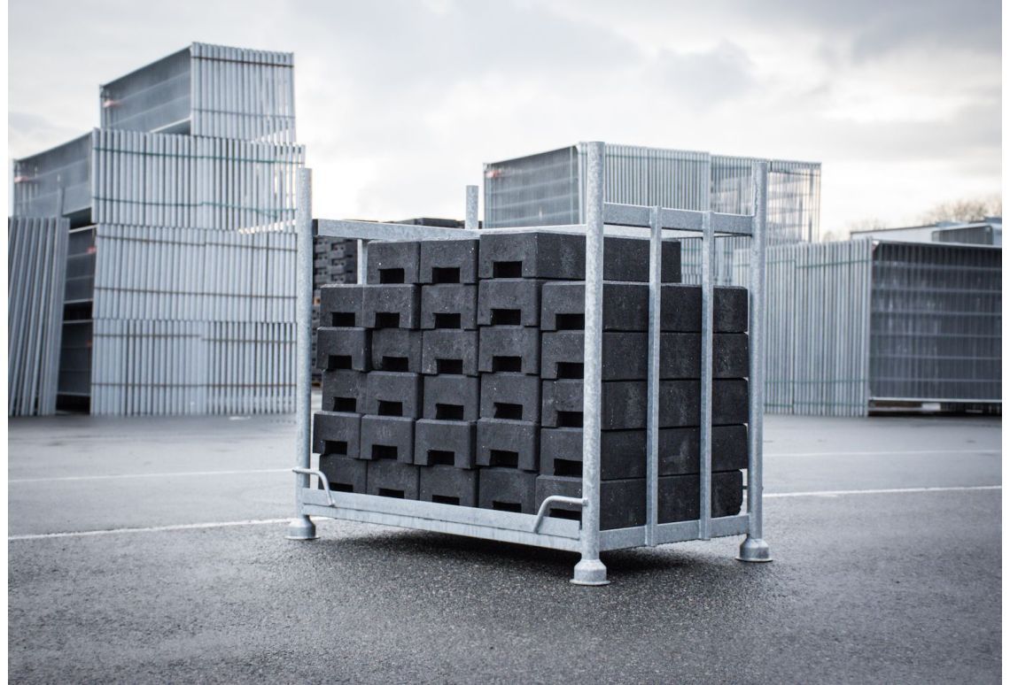 Deze kwalitatieve opslagbunker is specifiek ontwikkeld voor het opslaan en vervoeren van 30 kunststof- of beton bouwhekvoeten.
