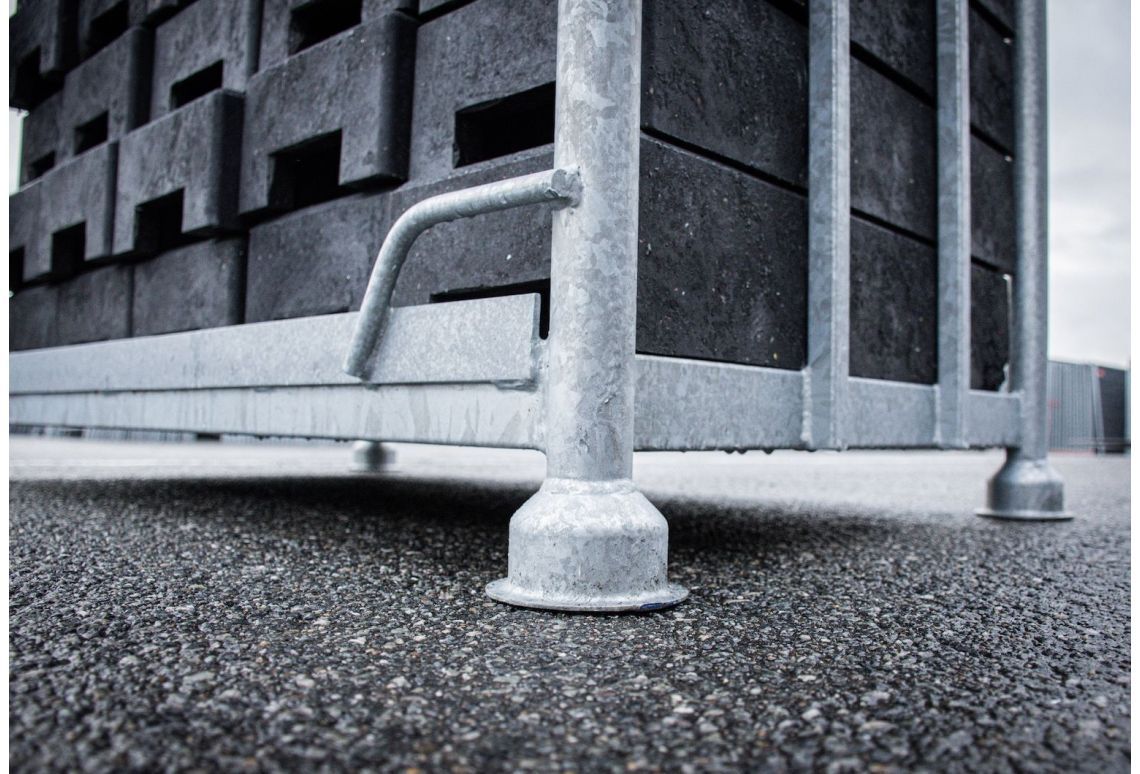 Voor het laden van de bouwhekvoeten is de opslagbunker aan één zijde open. De overige zijdes zijn gesloten, zodat de voeten er niet uit kunnen vallen tijdens transport. Daarnaast is het mogelijk om meerdere opslagbunkers op elkaar te stapelen voor efficiënte en compacte opslag.
